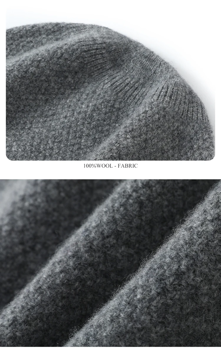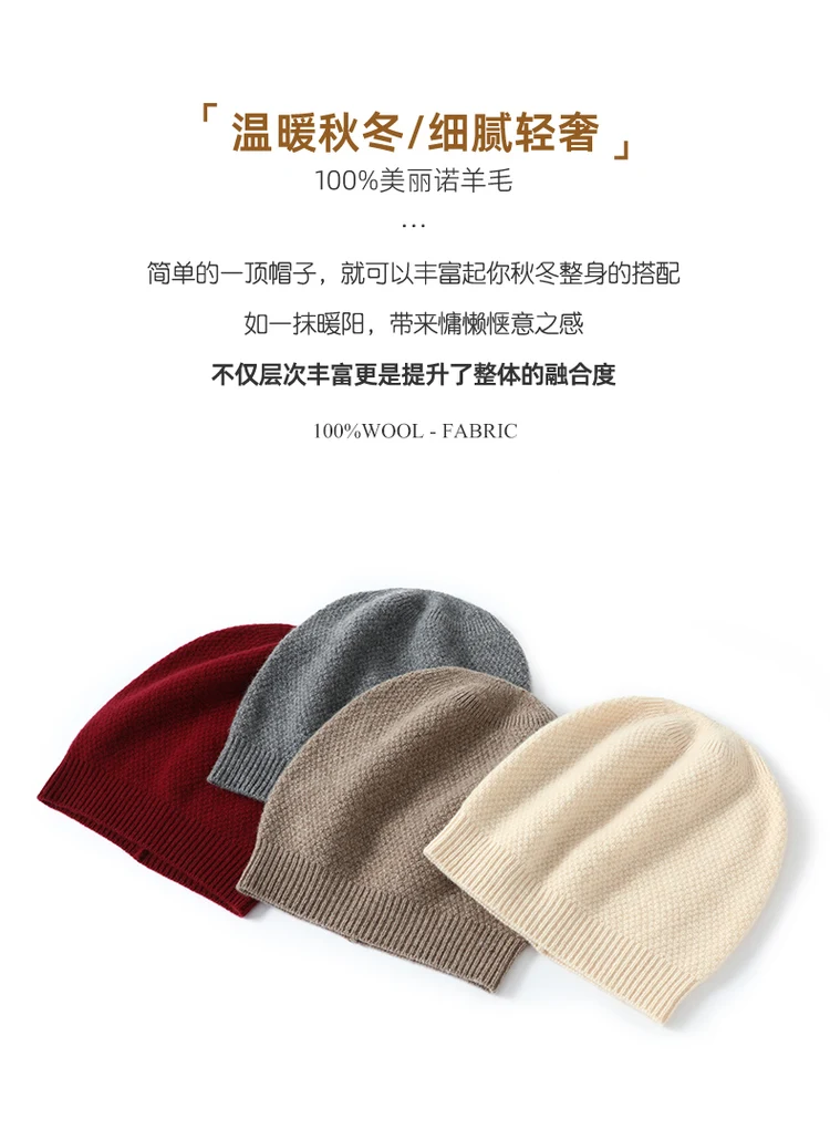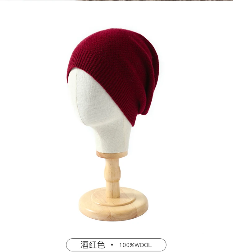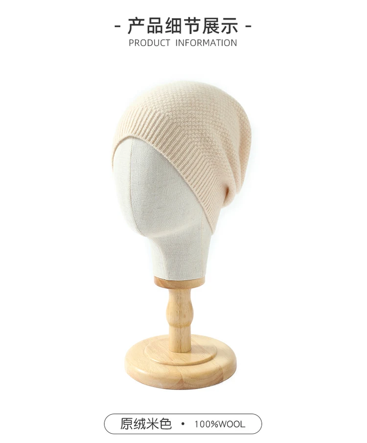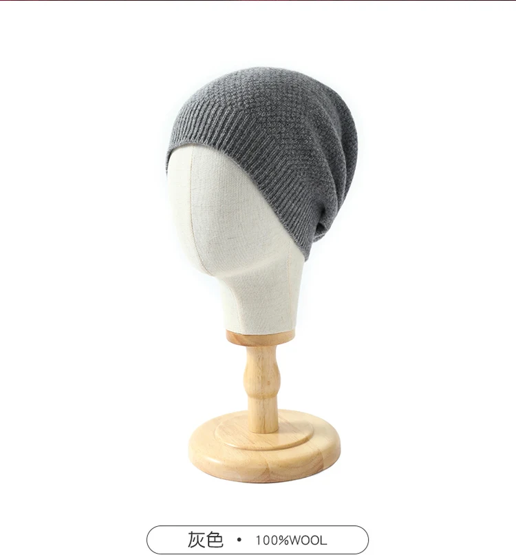 100% Wool Hat New Thickened Knitting Toque Autumn and Winter Woolen Hat Men and Women Pure Color All-Matching Warm Earflaps Cap
