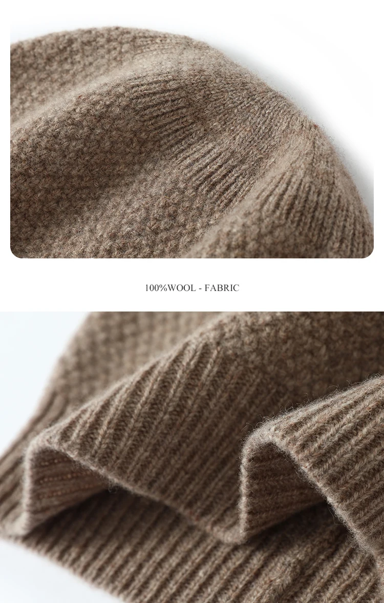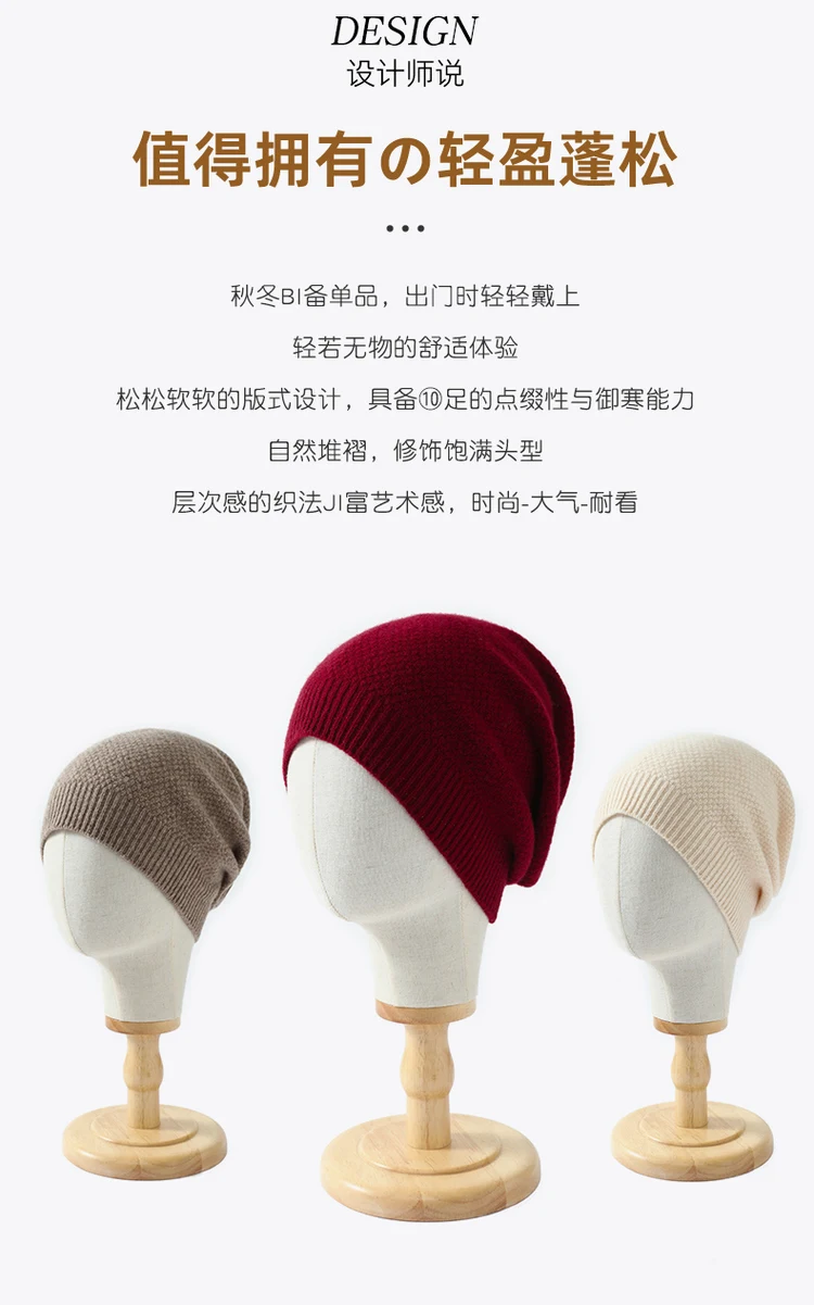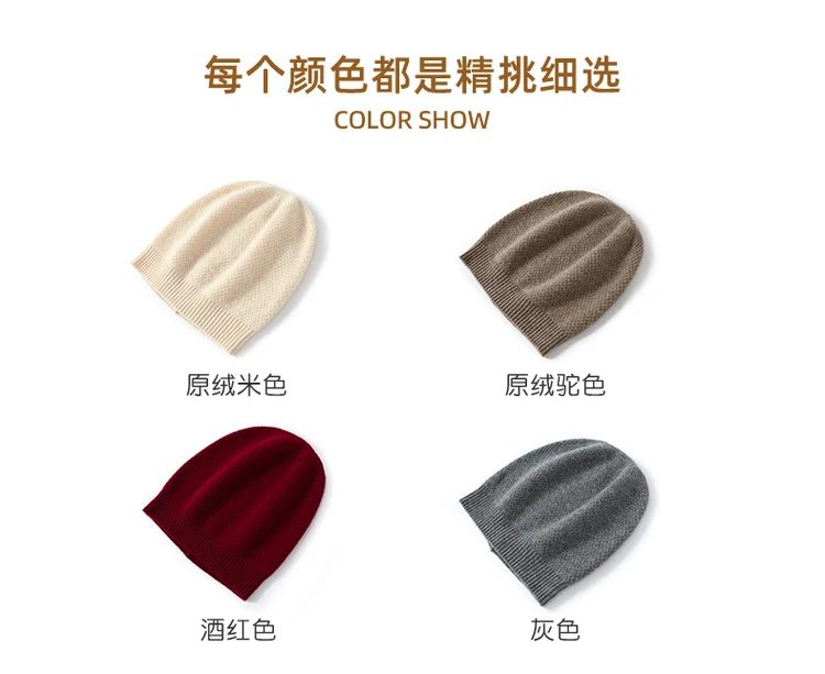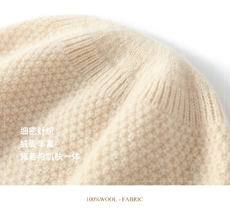 100% Wool Hat New Thickened Knitting Toque Autumn and Winter Woolen Hat Men and Women Pure Color All-Matching Warm Earflaps Cap